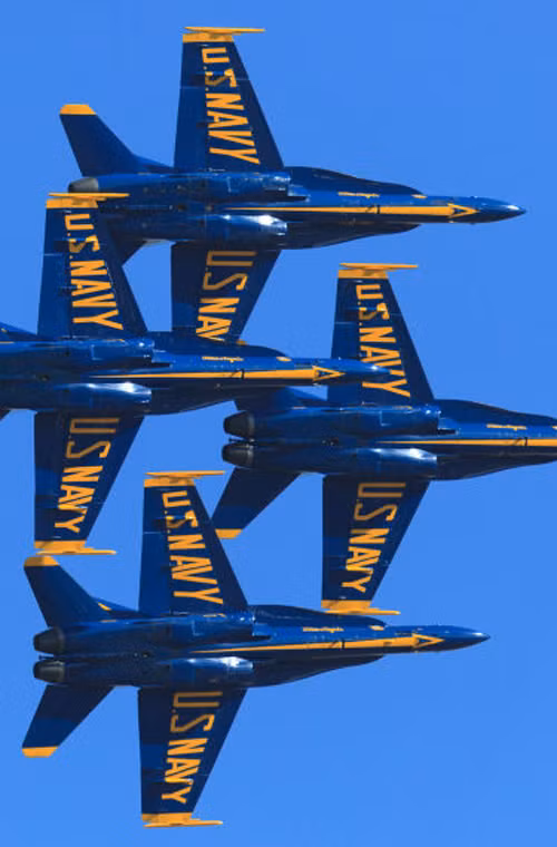 Điều khiển chiếc F/A-18C/D là các phi công kì cựu của phi đội biểu diễn Hải quân Mỹ Blue Angles.