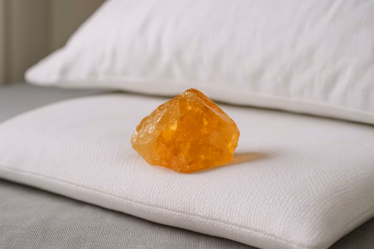 Đặt thạch anh vàng dưới gối không chỉ giúp cải thiện chất lượng giấc ngủ mà còn kích hoạt luân xa hoàng thái dương, trung tâm năng lượng liên quan đến tiền bạc và bản lĩnh cá nhân.
