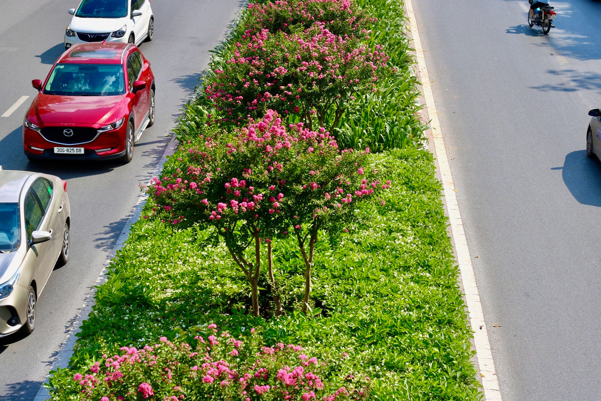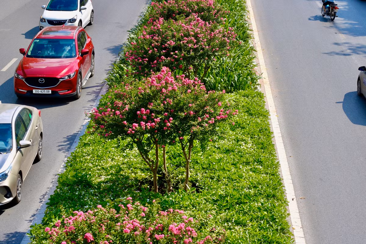 Con đường hoa tường vi tạo thêm vẻ đẹp cho cảnh quan đô thị của Thủ đô