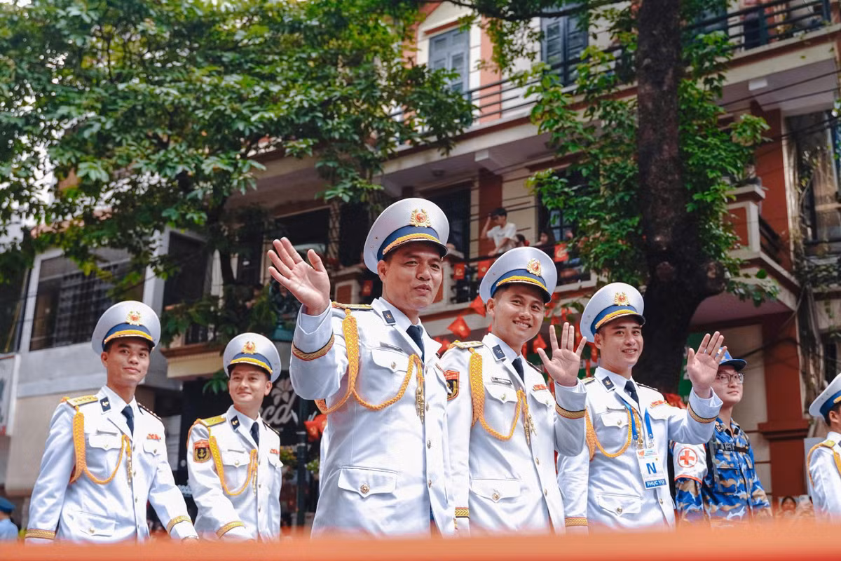 Trong tiếng nhạc quân hành rộn ràng, hàng vạn bước chân dồn dập, đều tăm tắp tạo nên nhịp điệu hùng tráng, khẳng định sức mạnh và kỷ luật của quân dân Việt Nam.