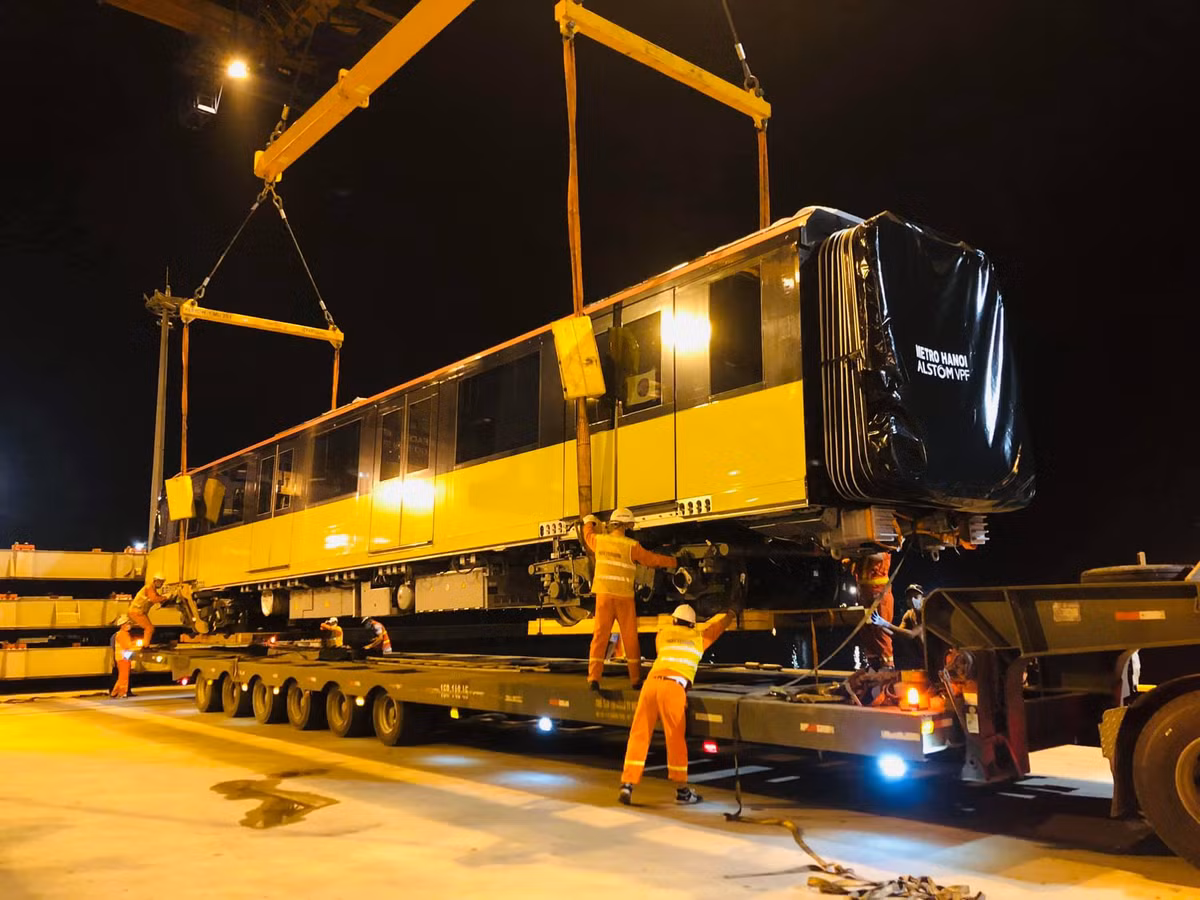 Hiện cả 4 toa của đoàn tàu cuối cùng đã được xếp lên xe ô tô đầu kéo, dự kiến ngày 21/9 sẽ được đưa về Depot Nhổn để lắp ráp và thử nghiệm theo quy trình dự án.