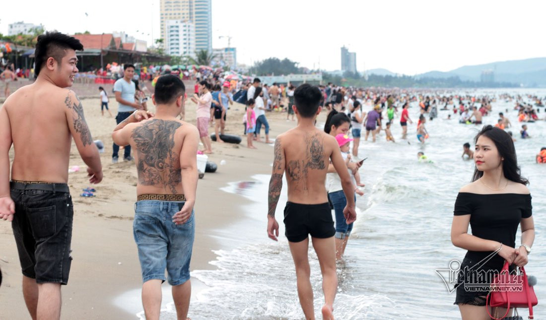 Có những đoạn bờ biển chật ních người tắm chiều muộn 1/5.