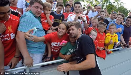 Do đó, người ta có thể hiểu tâm trạng của nữ CĐV dưới đây, sau khi được chụp ảnh "tự sướng" với tiền vệ Steven Gerrard của Liverpool trên đất Mỹ.