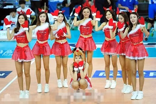 Hưởng ứng không khí Giáng sinh, dàn gái xinh Hàn Quốc trong các đội cổ vũ cũng hóa thân thành những cô nàng Noel xinh đẹp, gợi cảm và trẻ trung.
