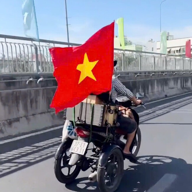 Chàng trai Viết Quân chạy xe ba bánh từ Nghệ An vào TP.HCM để xem diễu binh