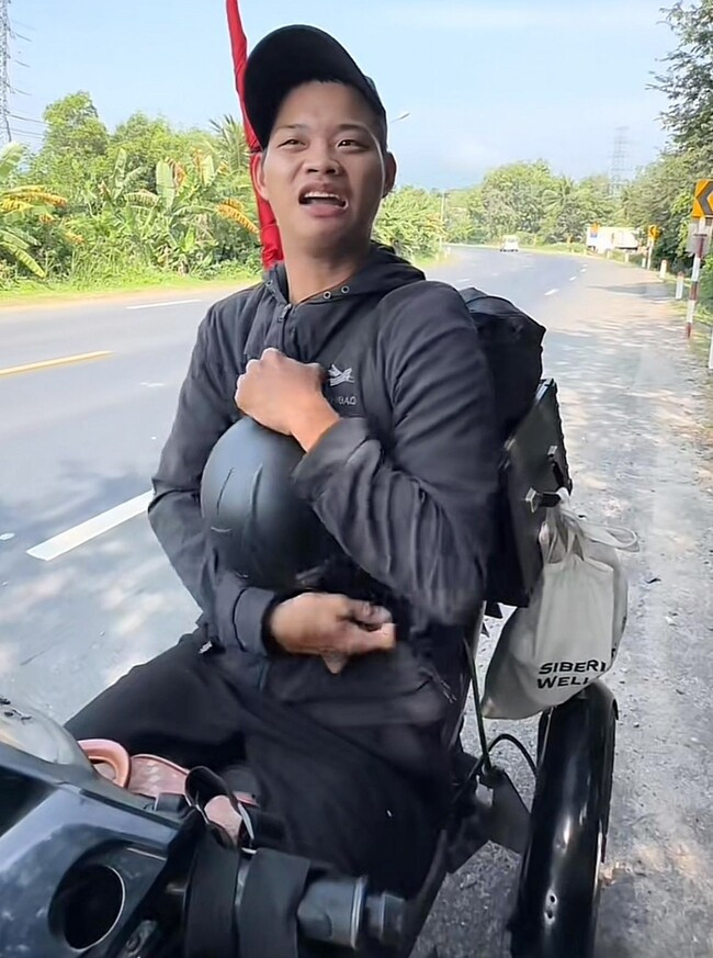 Dù trên đường đi gặp nhiều vất vả, khó khăn nhưng chàng trai chưa từng có ý định bỏ cuộc