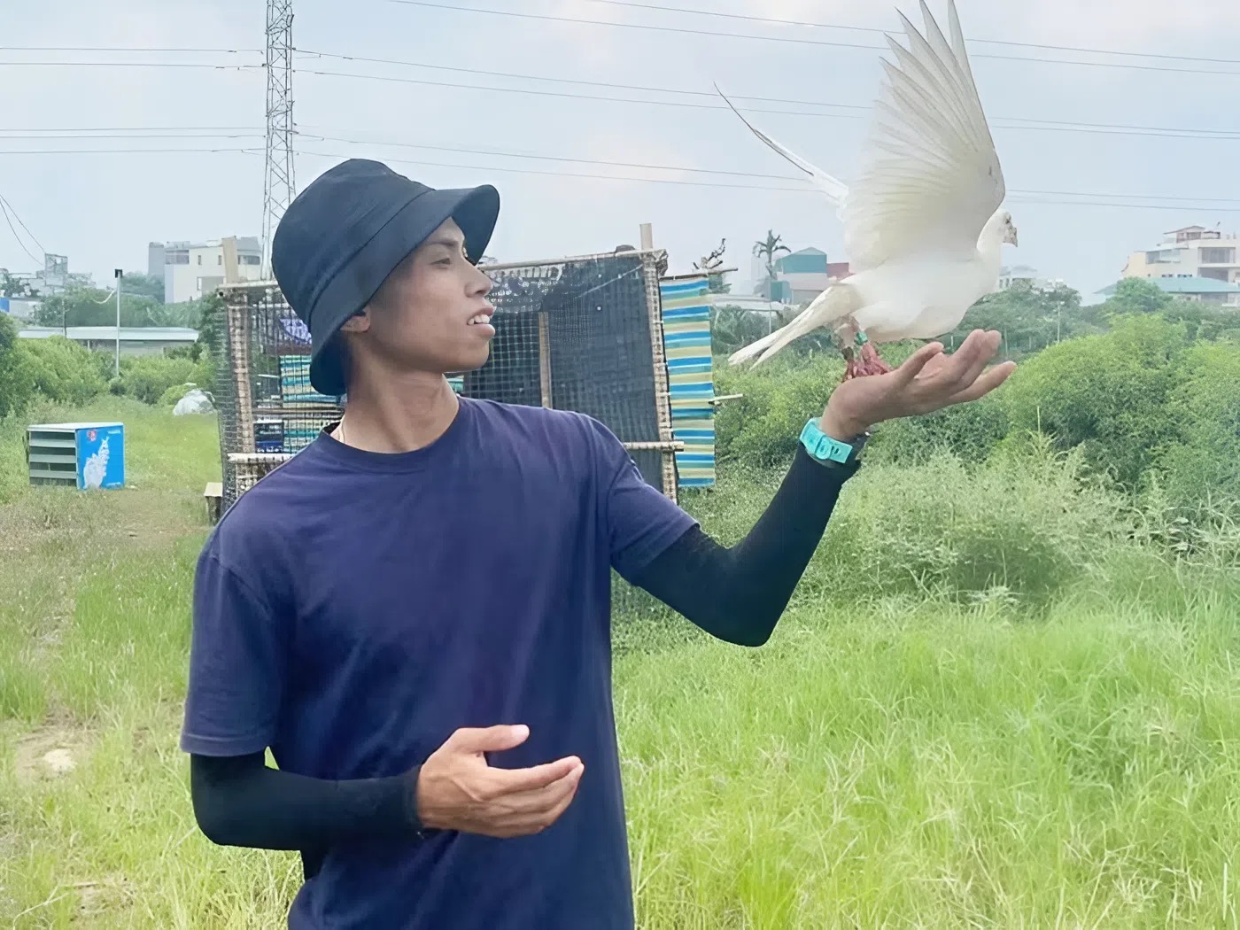 “Thời điểm chuyển chim ra Hà Nội thì mưa gió thất thường, lại đang ảnh hưởng của bão, nên sức khỏe của các đồng chí bồ câu bị tác động rất nhiều. Mình và anh Thuận phải gia cố chuồng trại liên tục, may mắn sau này còn mượn được một chiếc kho để cho đàn chim ở tạm, chứ nếu để ngoài trời thì rất dễ nhiễm lạnh, sinh bệnh.