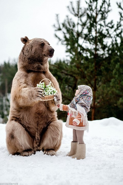 Theo tờ storytrender, bộ ảnh gây kinh ngạc vì tính thực tế, em bé hoàn toàn thoải mái chơi bên cạnh gấu khổng lồ không có chút sợ hãi. Nhiếp ảnh gia người Nga Olga Barantseva đã ghi lại khoảnh khắc đắt giá ở một cánh rừng gần thành phố Moscow, Nga.