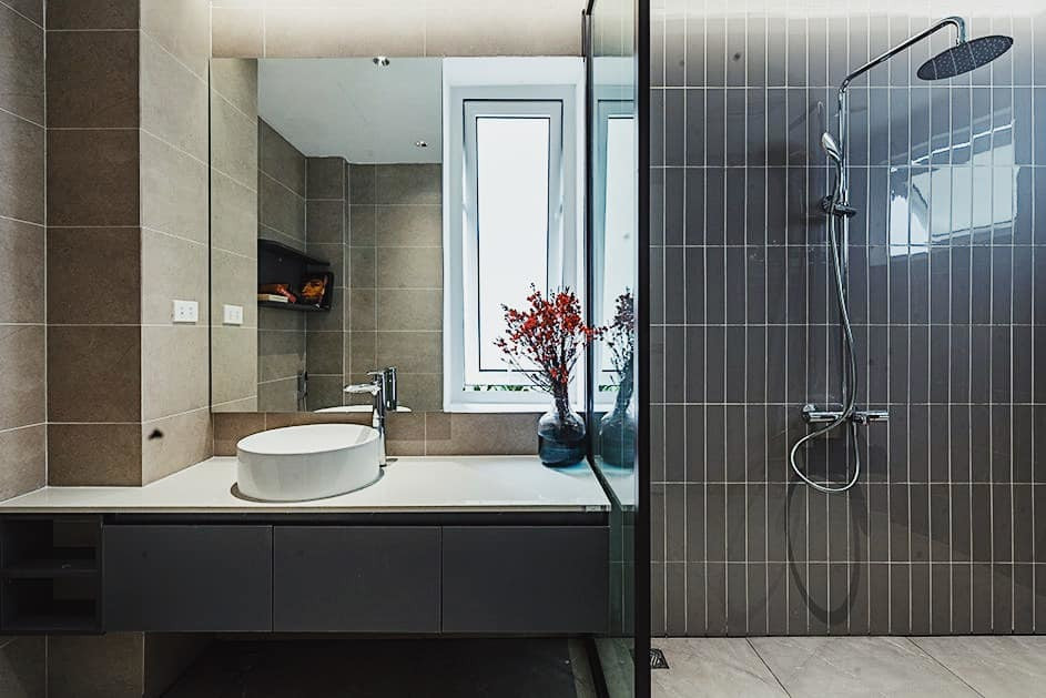 Phòng vệ sinh trước và sau khi thay đổi, nhìn sang trọng hơn.