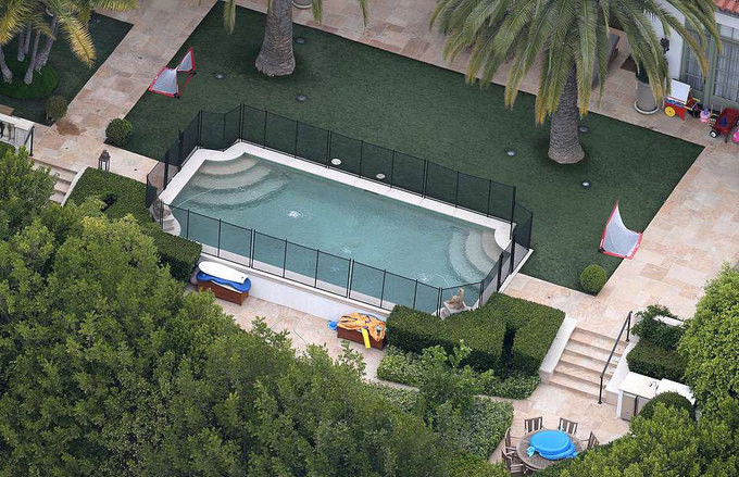 Biệt thự có 6 phòng ngủ, 9 phòng tắm, một hồ bơi, một thư viện, một phòng giải trí. Cửa sắt, hàng rào cao đảm bảo sự riêng tư cho gia chủ.