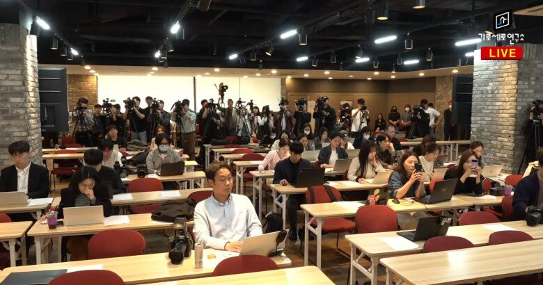YouTuber Lee Jin Ho (người ngồi bên trái) trong họp báo chiều 7/5 phản pháo cáo buộc từ Viện Garo Sero.