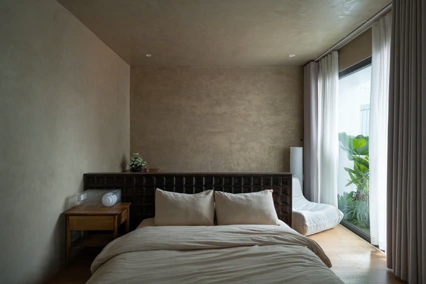 Các bức tường gạch thẻ rỗng như những tấm phên chạy dọc công trình, là màn lọc không khí, tránh các tác động xấu lên ngôi nhà.