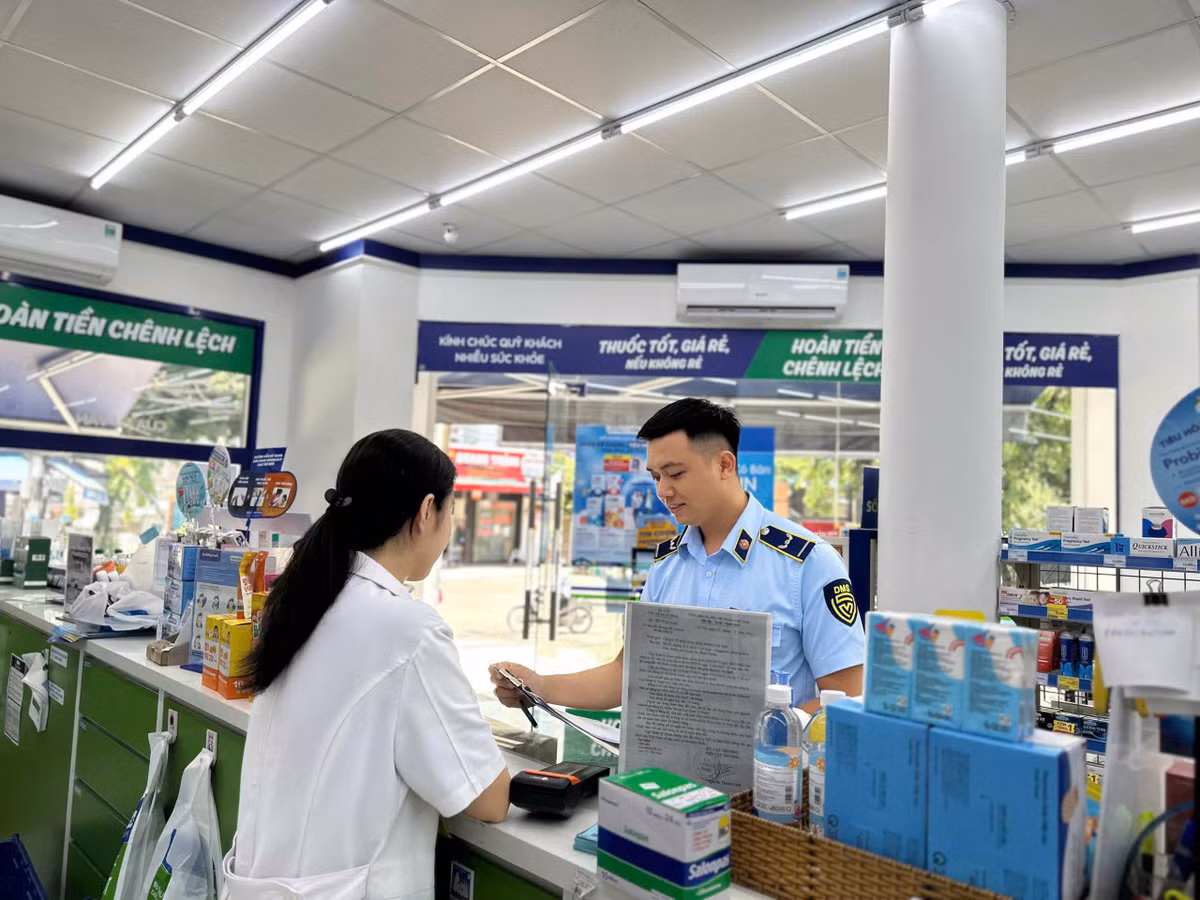 Lực lượng quản lý thị trường kiểm tra thực tế tại cơ sở kinh doanh dược/Ảnh dms
