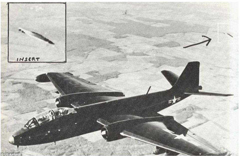Bức ảnh do một phi công lái máy bay phản lực B - 47 chụp năm 1957 tại khu vực gần căn cứ không quân Edwards ở California (Mỹ). Gần đuôi của máy bay là một vật thể lạ, được cho là vật thể bay không xác định (UFO).