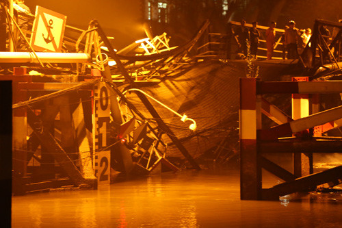 | Hiện trường vụ sập cầu Long Kiển, TP.HCM. |