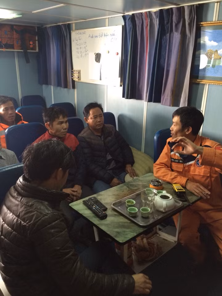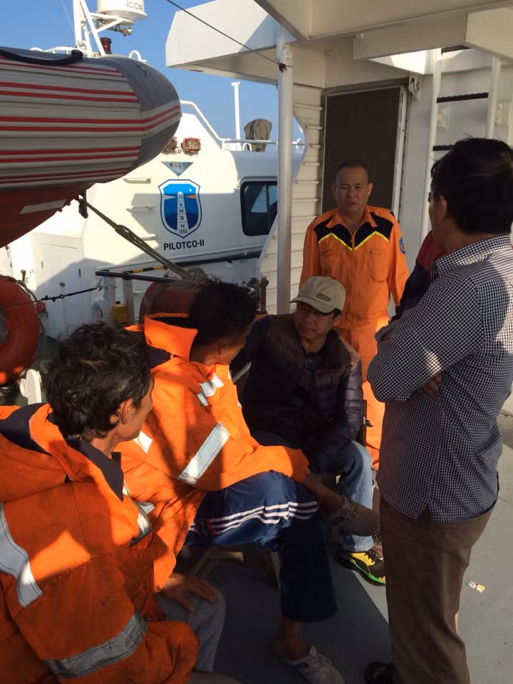| Hai thuyền viên may mắn được giải cứu kịp thời. |