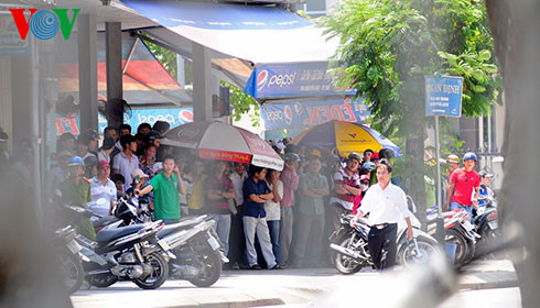 Hay tin, hàng ngàn người dân hiếu kỳ đã đến xem gây tắc nghẽn giao thông toàn bộ khu vực, với bán kính cả cây số. Lực lượng CA khoảng gần 100 cán bộ chiến sĩ cũng đang quây kín quầy hàng vừa trấn an dân chúng, vừa tìm cách tiếp cận cánh cửa của hàng vàng. Nhìn thấy cảnh náo loạn đó, anh Phúc thấy tim mình như rơi khỏi lồng ngực. Vào được gần đến cửa nhà, thấy bên ngoài vợ anh đang ngất lịm, bên trong cánh cửa sắt là tiếng cháu Vy đang gào khóc thảm thiết, dù rất đau lòng, nhưng ngay lập tức anh Phúc tự trấn tĩnh rằng, phải bình tĩnh để giải quyết mọi việc. Một tổ công tác của CA tỉnh Bắc Giang đã gặp anh Phúc để nói sơ qua sự việc và những diễn biến đang diễn ra bên trong. Theo đó anh Phúc được biết, tên cướp đã vào tiệm vàng khống chế con gái anh hơn một tiếng đồng hồ. Qua khe cửa, nhìn cảnh tên cướp ôm con gái mình trước ngực, một tay kè kè dao vào cổ cháu, anh thấy nhói đau.