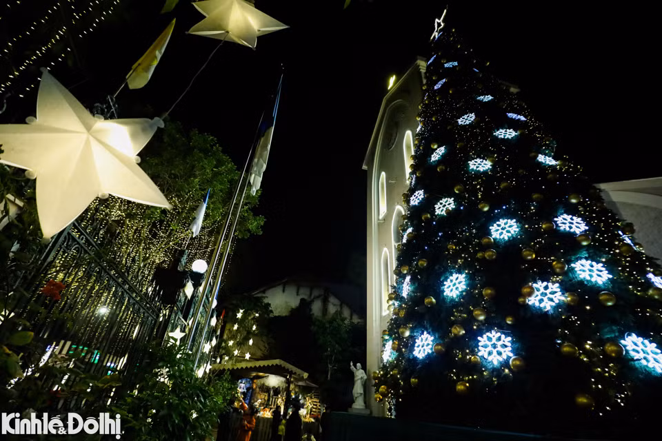 Bên trong nhà thờ được trang trí lộng lẫy tạo không khí Giáng sinh.