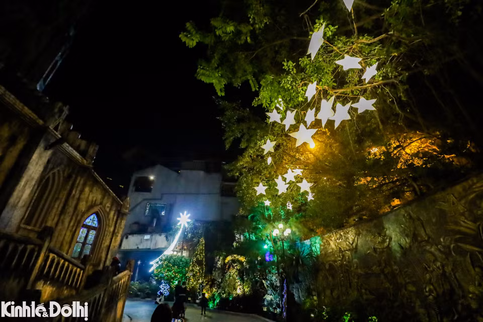 Các Nhà thờ Lớn Hà Nội không xa, Nhà thờ Hàm Long (Hai Bà Trưng) cũng lung linh ánh đèn, tràn ngập không khí Giáng sinh ngay từ ngoài đường.