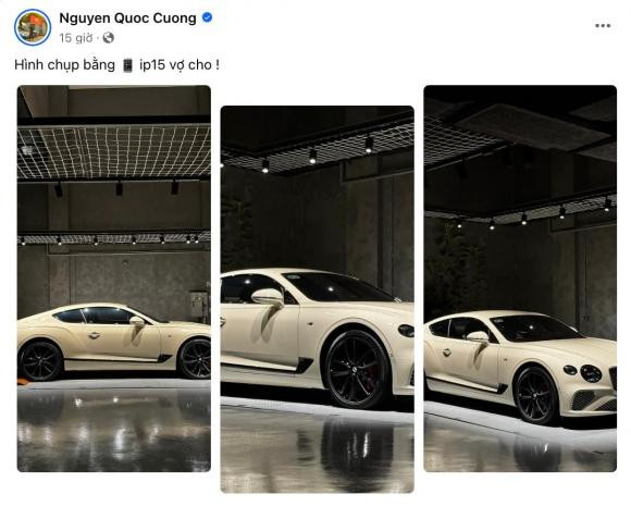 Sau đó, Cường Đô La còn tranh thủ đăng luôn siêu xe cực sang xịn của mình và trá hình khoe quà vợ tặng: "Hình chụp bằng ip15 vợ cho". Nam doanh nhân ngày càng xứng đáng là người chồng, người cha quốc dân.