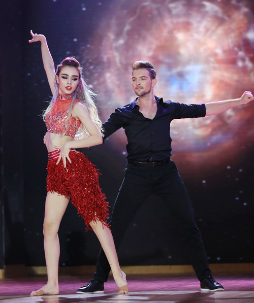 | Phần dự thi ấn tượng nhất có lẽ là tiết mục của Khánh My cùng bạn nhảy. Cặp đôi đã lồng ghép hiệu quả các điệu nhảy Đương đại, Slow Foxtrot và Rumba. |