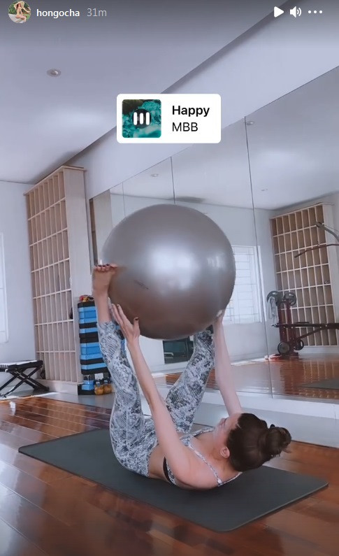 ộng tác yoga với bóng cũng được cô kết hợp nhuần nhuyễn.