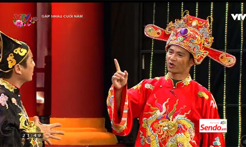 | Táo quân 2018 quảng cáo lộ liễu các đơn vị tài trợ. Ảnh: VTV |