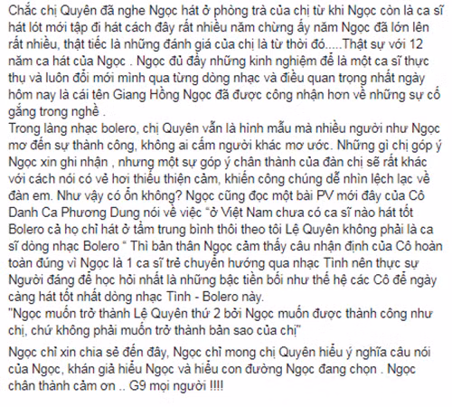 | Giang Hồng Ngọc - Lệ Quyên (phải). Ảnh: FBNV |