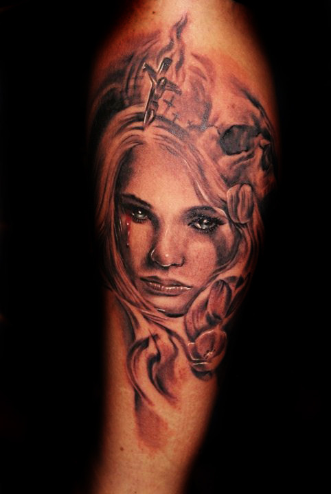 Hình ảnh Đức Mẹ Maria được các thợ xăm mình miêu tả rất chân thực bằng phong cách xăm 3D.