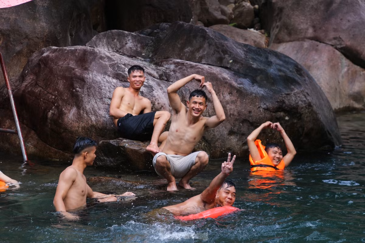 Nguyễn Văn Dự cùng nhóm bạn đã phượt từ Huế về Phú Lộc để tận hưởng ngày cuối nghỉ lễ của mình. “Dự định của nhóm chúng em là vào Đà Nẵng để đi chơi, nhưng trời nắng quá nên phải đổi địa điểm phút cuối. Suối Tiên cảnh vật rất đẹp, dòng suối mát trong lành rất thích hợp để mình vui chơi, tránh nóng”, bạn Dự cho biết.