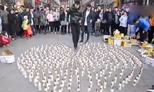 Sau khi “tác phẩm” hoàn thành, anh dẫn cô gái đến, cầu hôn cô trước mặt đông đảo người xem và cô gái nhận lời. Sau đó, nhiều người đến xem không giải tán ngay; họ xô đẩy nhau để lấy các chai sữa cầu may.