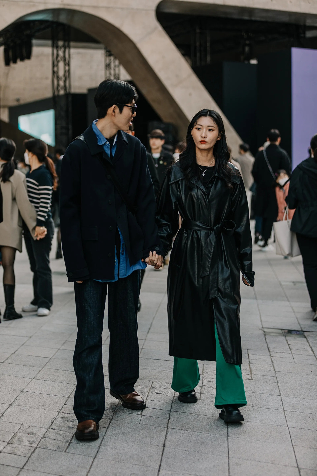Tại Seoul, giới mộ điệu ăn diện sành điệu trên đường phố. Các mẫu túi hiệu đắt đỏ, áo khoác dáng dài và sneakers được ưa chuộng.