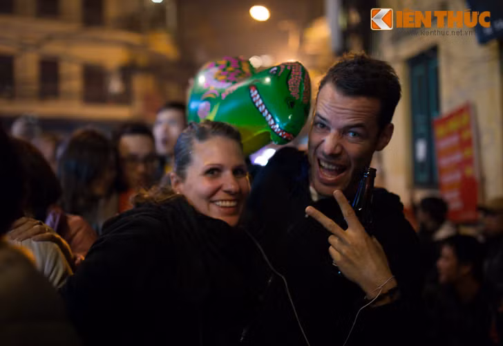 Những vị khách Tây đón năm mới ở Việt Nam cũng không ngần ngại giao lưu với các bạn trẻ Việt Nam, gạt bỏ nỗi buồn phải xa quê hương để cùng vui vẻ bên những người trẻ Việt cực kỳ sôi nổi.
