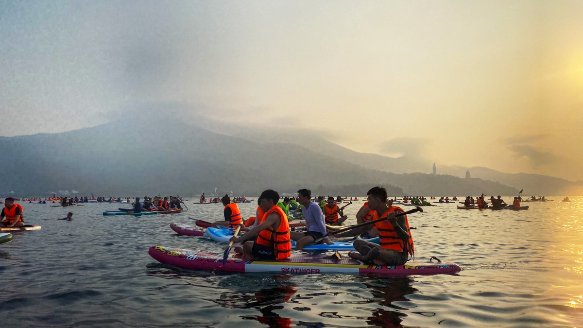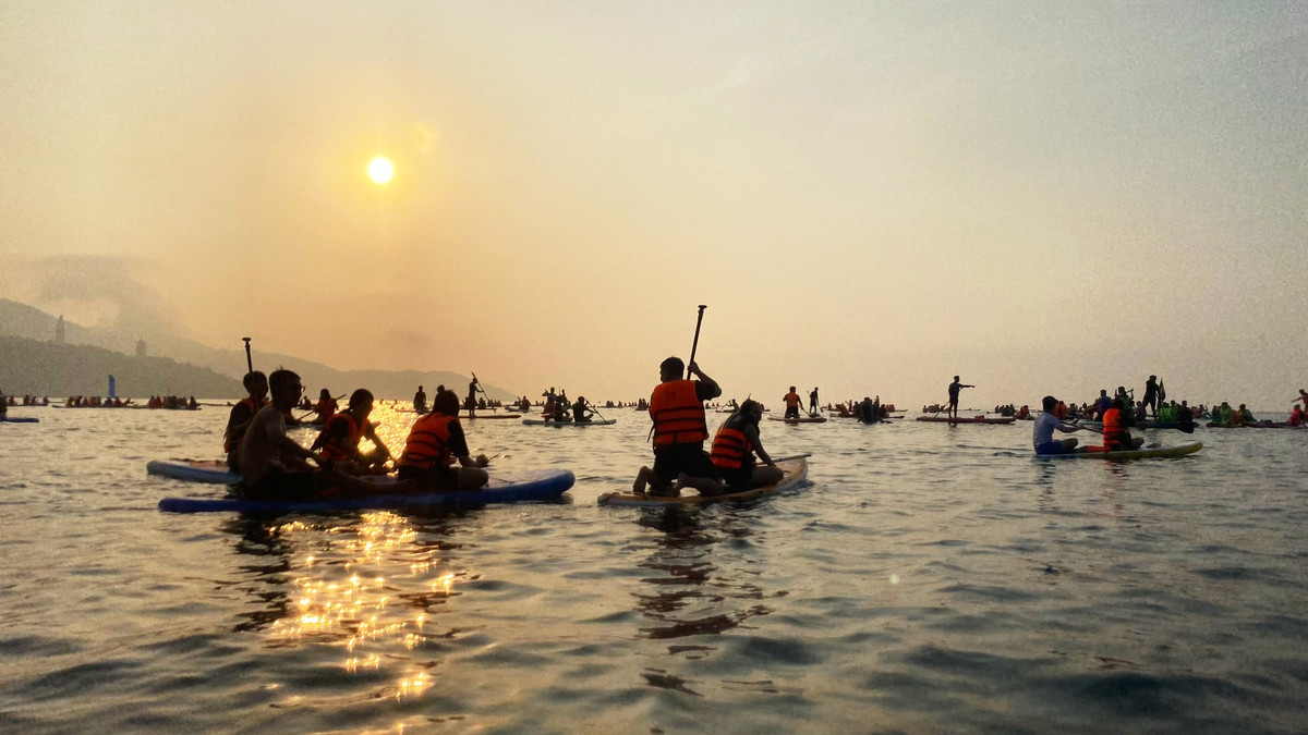 Hàng ngàn người dân và du khách cùng chèo Sup khiến mặt biển ở dưới chân núi của bán đảo Sơn Trà sôi động và nhộn nhịp.
