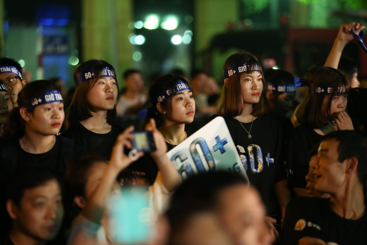 Rất nhiều thông điệp được các bạn trẻ là sinh viên của các trường ĐH đóng trên địa bàn TP Hà Nội giơ cao trong Lễ Tắt đèn Giờ Trái Đất 2019.