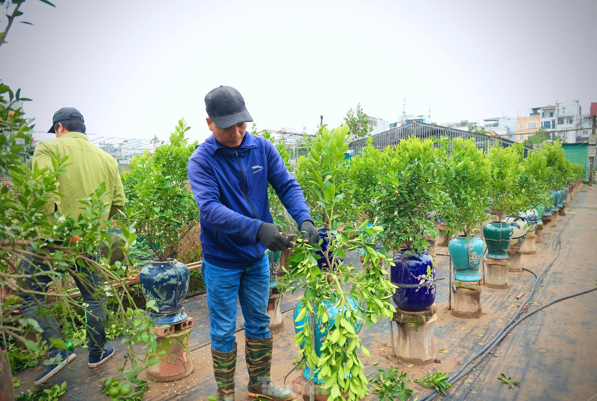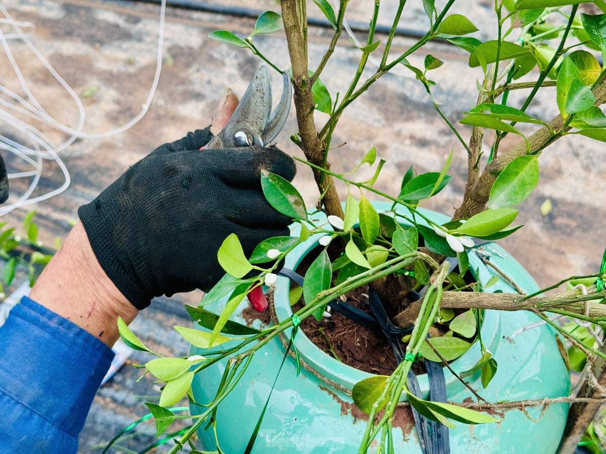 Sau cả tháng bị bứng khỏi đất vườn, để một gốc quất đã héo đâm chồi nảy lộc trở lại là một công việc không dễ dàng nên công đoạn cắt, uốn tỉa, tạo dáng các nhà vườn phải làm khẩn trương. "Chúng tôi thiếu người có kỹ thuật nên phải thuê các thợ vườn có tay nghề cao đến từ Hưng Yên làm cho kịp tiến độ, nắng lên là cây hỏng hết", một chủ nhà vườn chia sẻ.