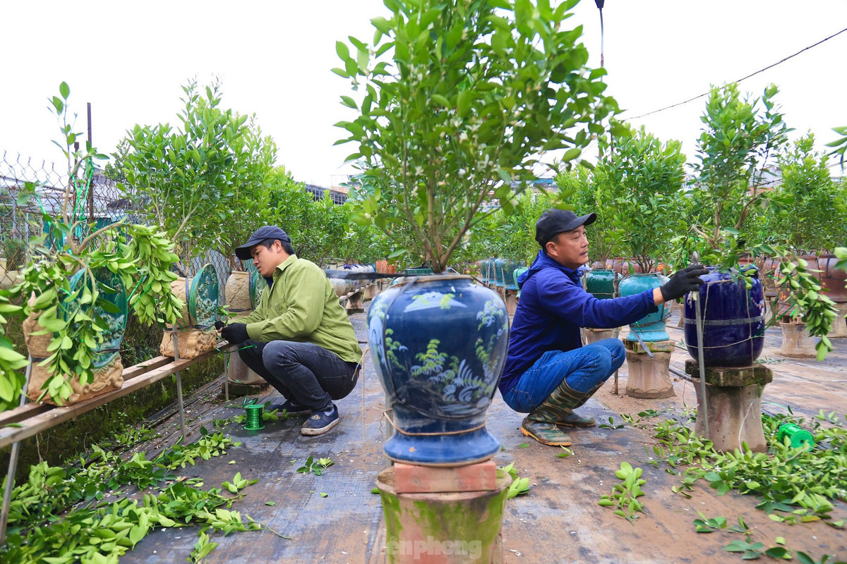 Các nhà vườn ở Tứ Liên đã mời những người có tay nghề quê Hưng Yên về gò thế, tạo dáng cho quất cảnh.