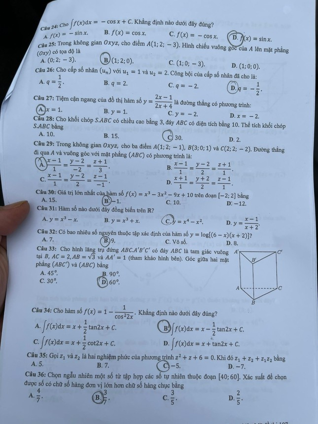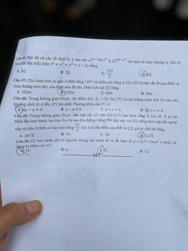 Nhìn chung, các câu hỏi rải đều ở các mảng kiến thức trong lớp 12. Các câu khó chủ yếu nằm ở những phần về hình học.