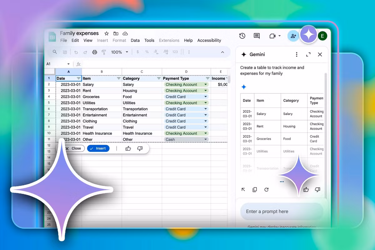 Đối với Sheets, Google cho biết Gemini đang phát triển từ một công cụ làm việc thành một đối tác cộng tác thực thụ. Chỉ với một yêu cầu, Gemini sẽ tổng hợp dữ liệu liên quan từ Gmail, Chat và Drive để nhanh chóng tạo ra bảng tính đã được định dạng hoàn chỉnh.