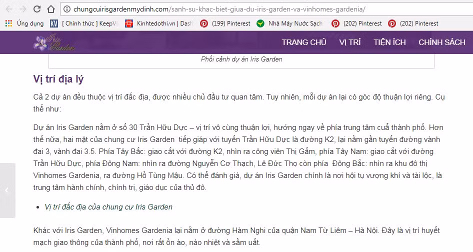 | Bài viết so sánh dự án Iris Garden với Vinhomes Gardenia. Ảnh chụp màn hình. |