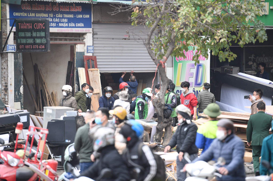 Người dân hỗ trợ cứu hàng hoá từ các xưởng gỗ gần đó ra ngoài.