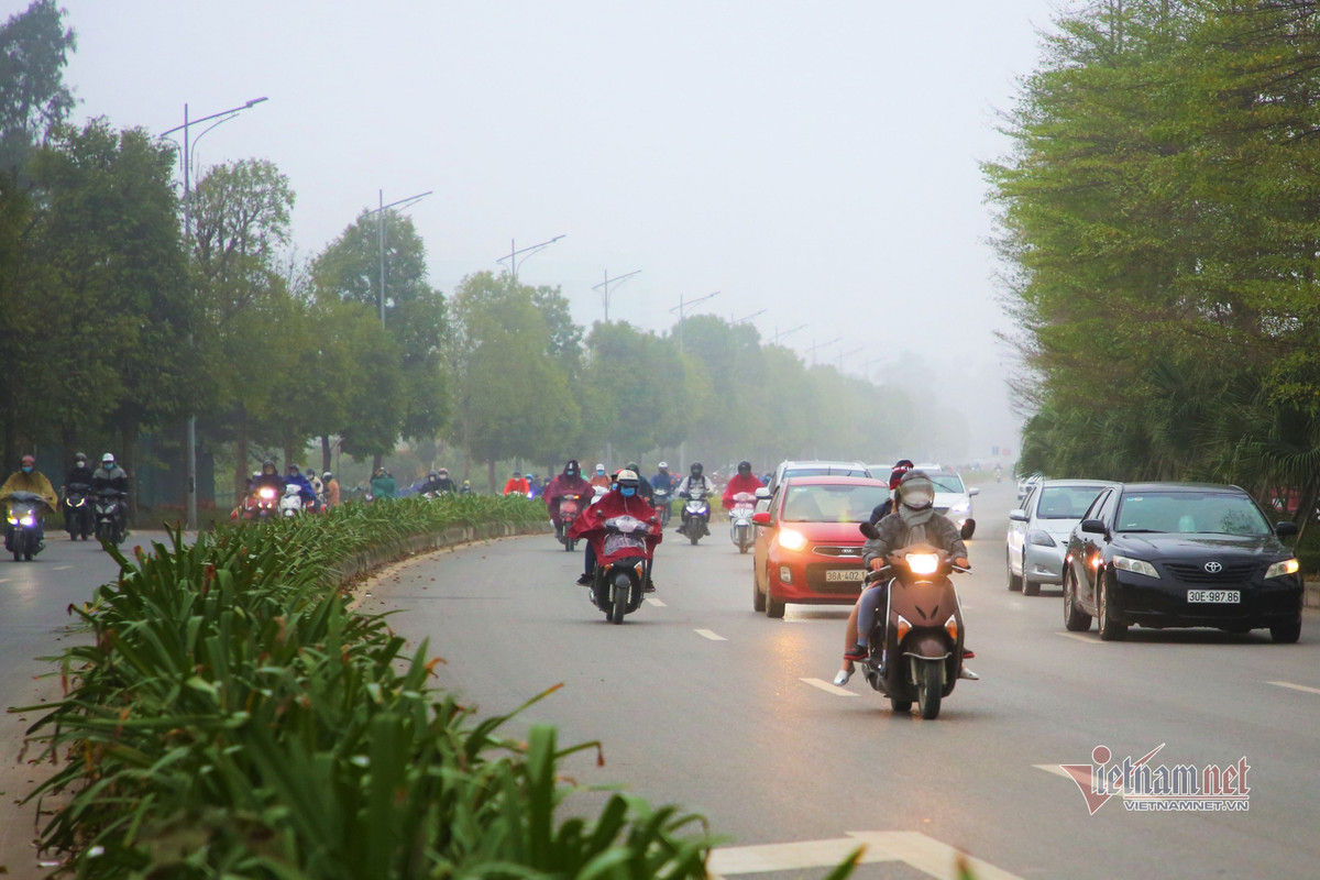 Hà Nội chìm trong mưa phùn, sương giăng từ sáng đến trưa