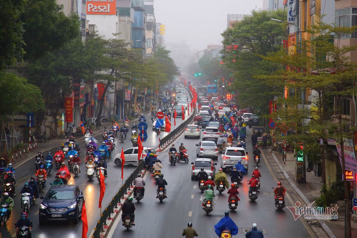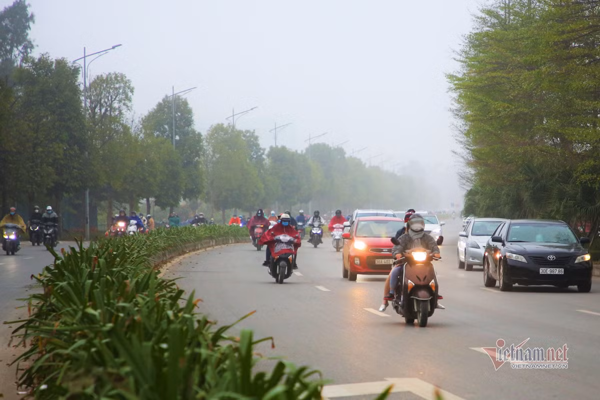 Sáng 26/1 (tức 24 tháng Chạp), Hà Nội có mưa nhỏ, mưa phùn và sương mù khiến việc di chuyển của người dân gặp khó khăn.