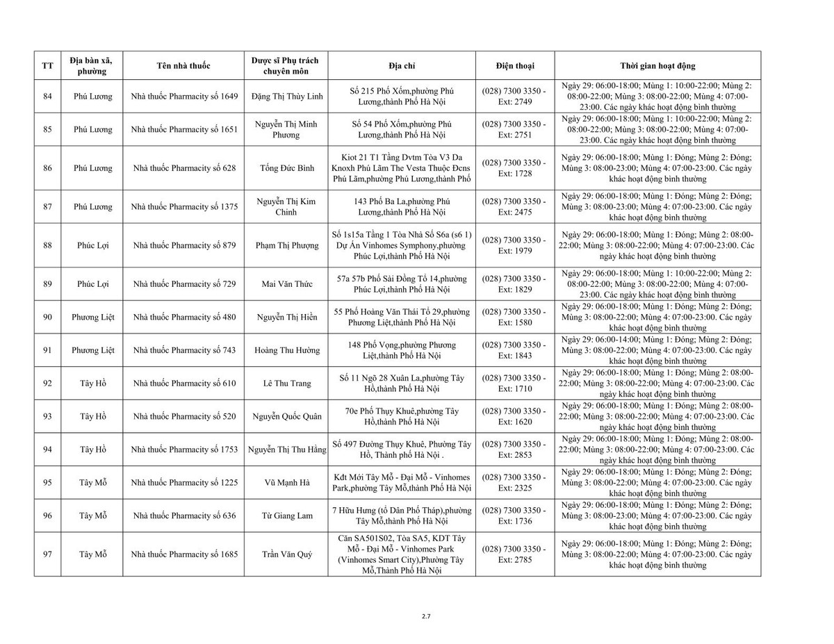 Theo danh sách, có 40 nhà thuốc trong bệnh viện trực thuộc Sở Y tế và 194 nhà thuốc tư nhân trên toàn thành phố trực bán thuốc trong dịp tết Nguyên đán Bính Ngọ 2026. Đồng thời, thông báo cụ thể địa bàn xã/phường, tên nhà thuốc, dược sĩ phụ trách chuyên môn, địa chỉ, điện thoại, thời gian hoạt động của các nhà thuốc trực bán thuốc.