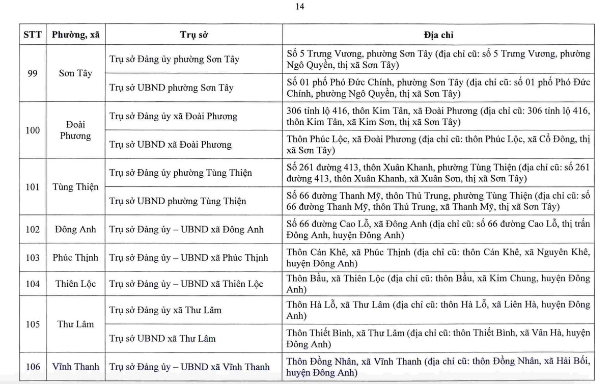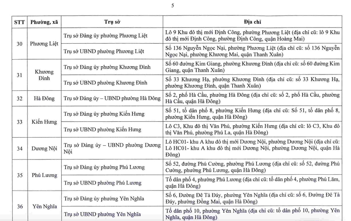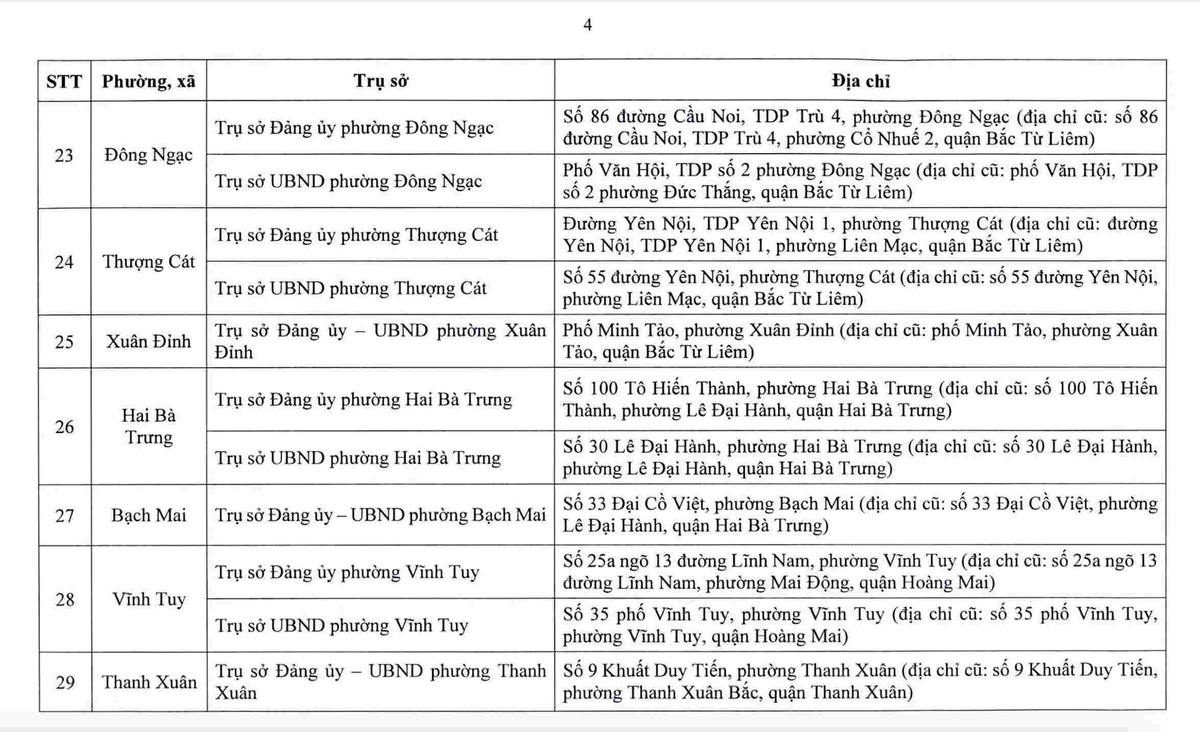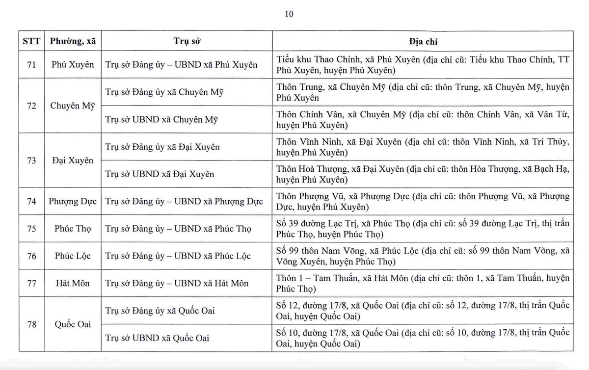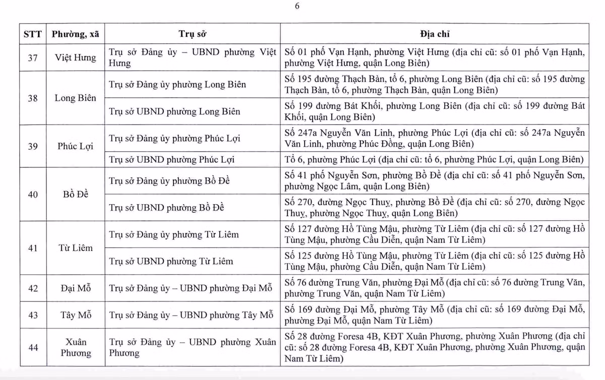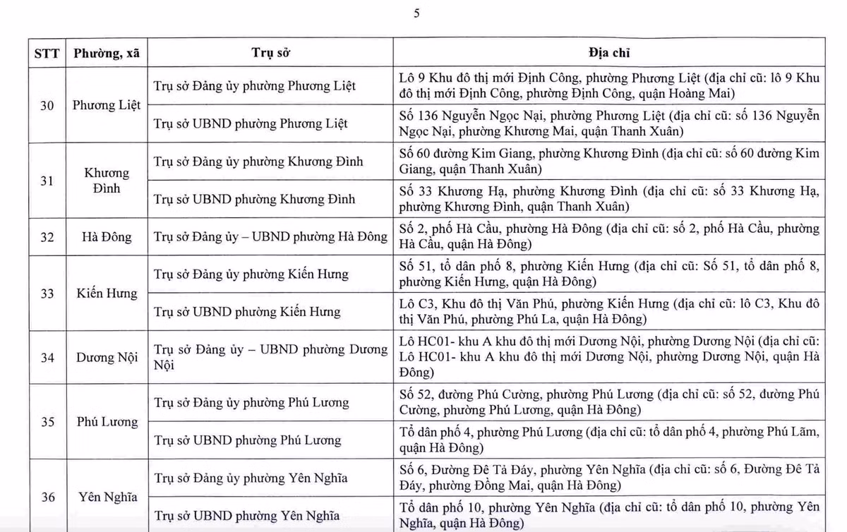 Sở Tài chính Hà Nội cho biết, sau sắp xếp, thành phố bố trí 232 cơ sở nhà, đất để làm trụ sở cho 126 xã, phường mới. Danh sách địa điểm trụ sở được công bố nhằm giúp người dân và tổ chức nắm rõ, phục vụ việc giải quyết thủ tục hành chính từ ngày 1.7.2025.
