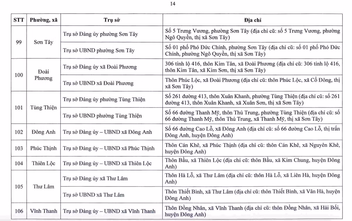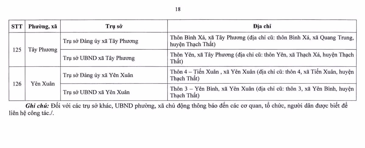 Dưới đây là danh sách các trụ sở làm việc của 126 xã, phường: