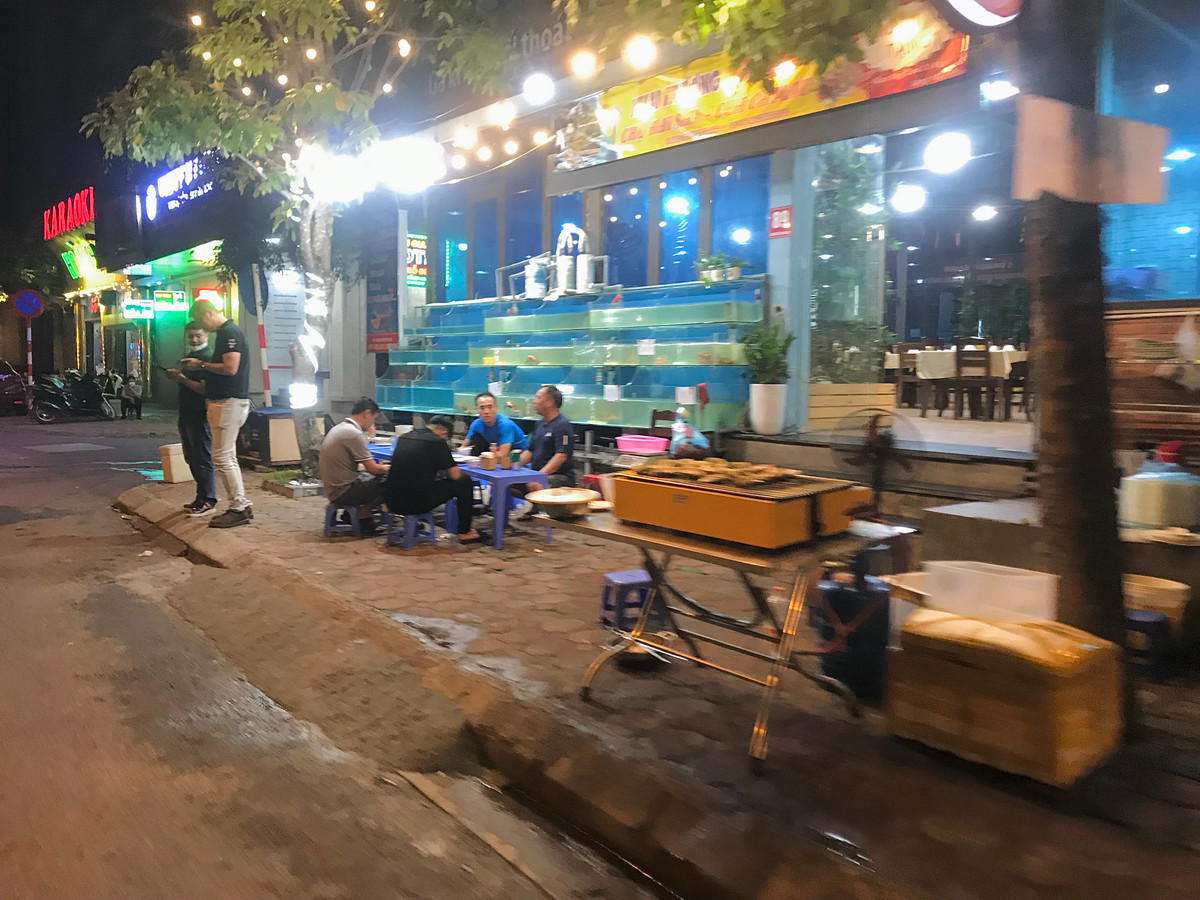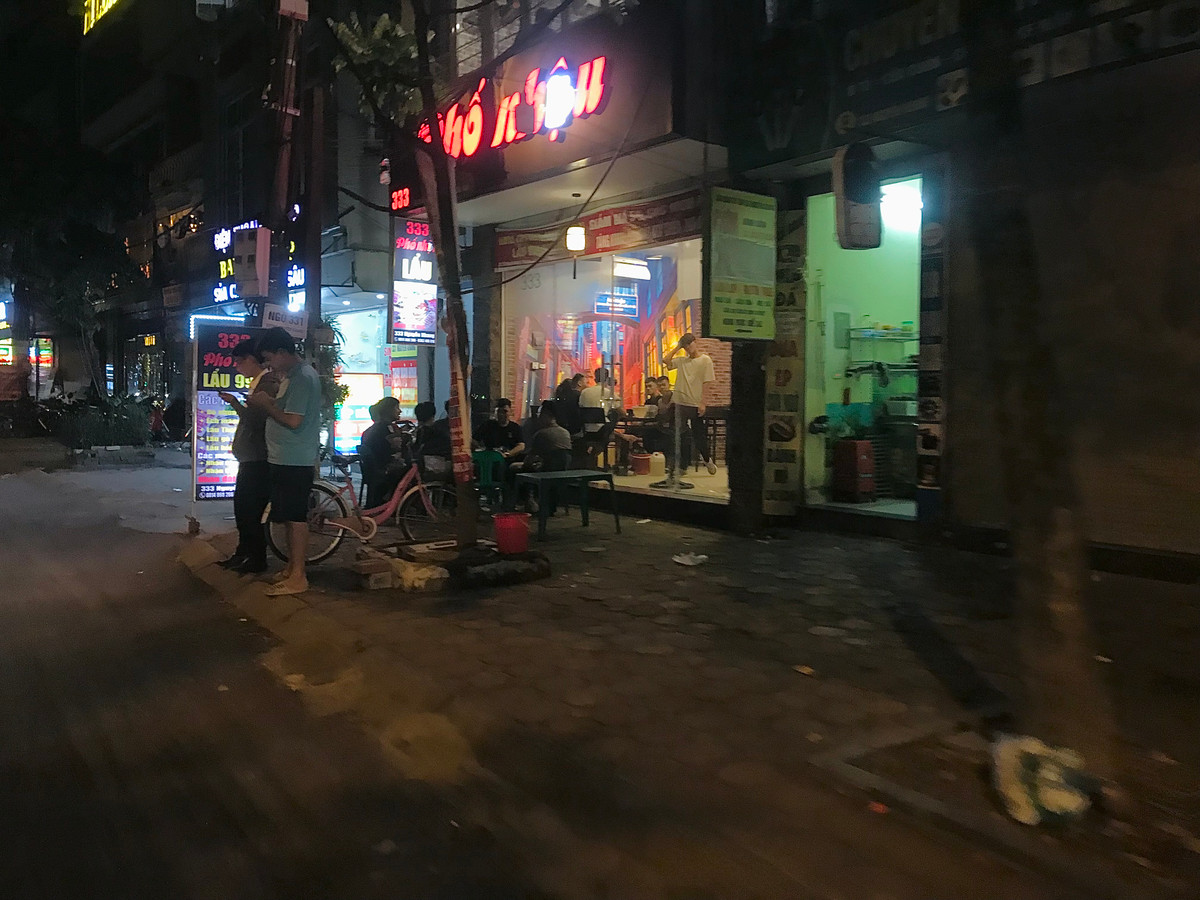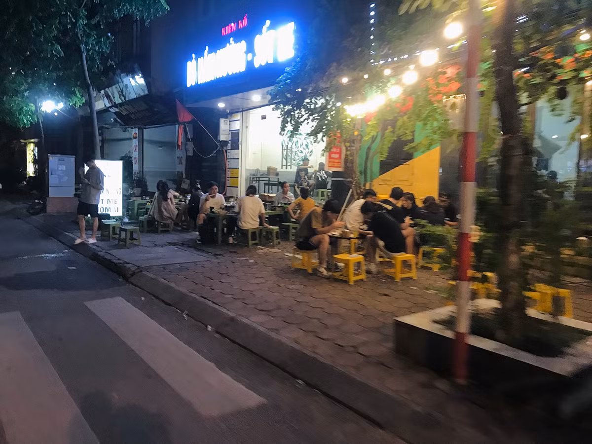 Càng về đêm, các hàng quán càng tấp nập thực khách. Vỉa hè, lòng đường cũng vì thế mà bị "nuốt trọn".