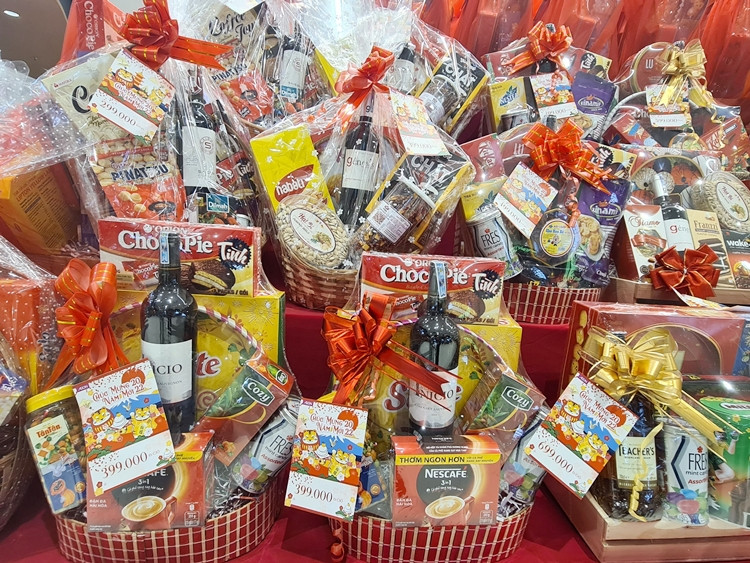 Giỏ quà là một mặt hàng “hot” trong dịp Tết với thiết kế đẹp mắt, có nhiều mẫu mã để lựa chọn.