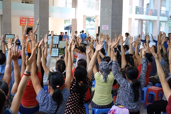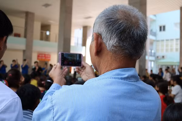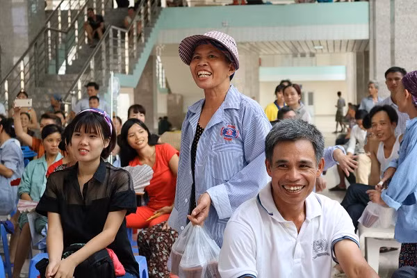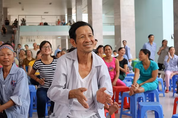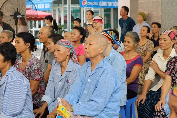 | Mặc dù thời tiết nóng nực nhưng các bệnh nhân ung thư tại Bệnh viện K cơ sở 3 đã tập trung từ rất sớm khi nghe thông báo có chương trình văn nghệ. |