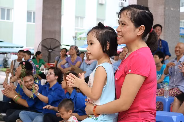| Từ trẻ con tới người già, ai cũng háo hức trước sự sôi động của đoàn văn nghệ tới từ các bạn sinh viên tình nguyện. |